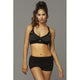 Space dye microfiber and elastic sports bra with bondage detail, netting inserts, t-back, and metal ring. Size medium fits B/C cup. Poly-bag packaging. Color: Black How to clean: Hand wash cold. Do not bleach, line dry, do not iron. Do not dry clean.